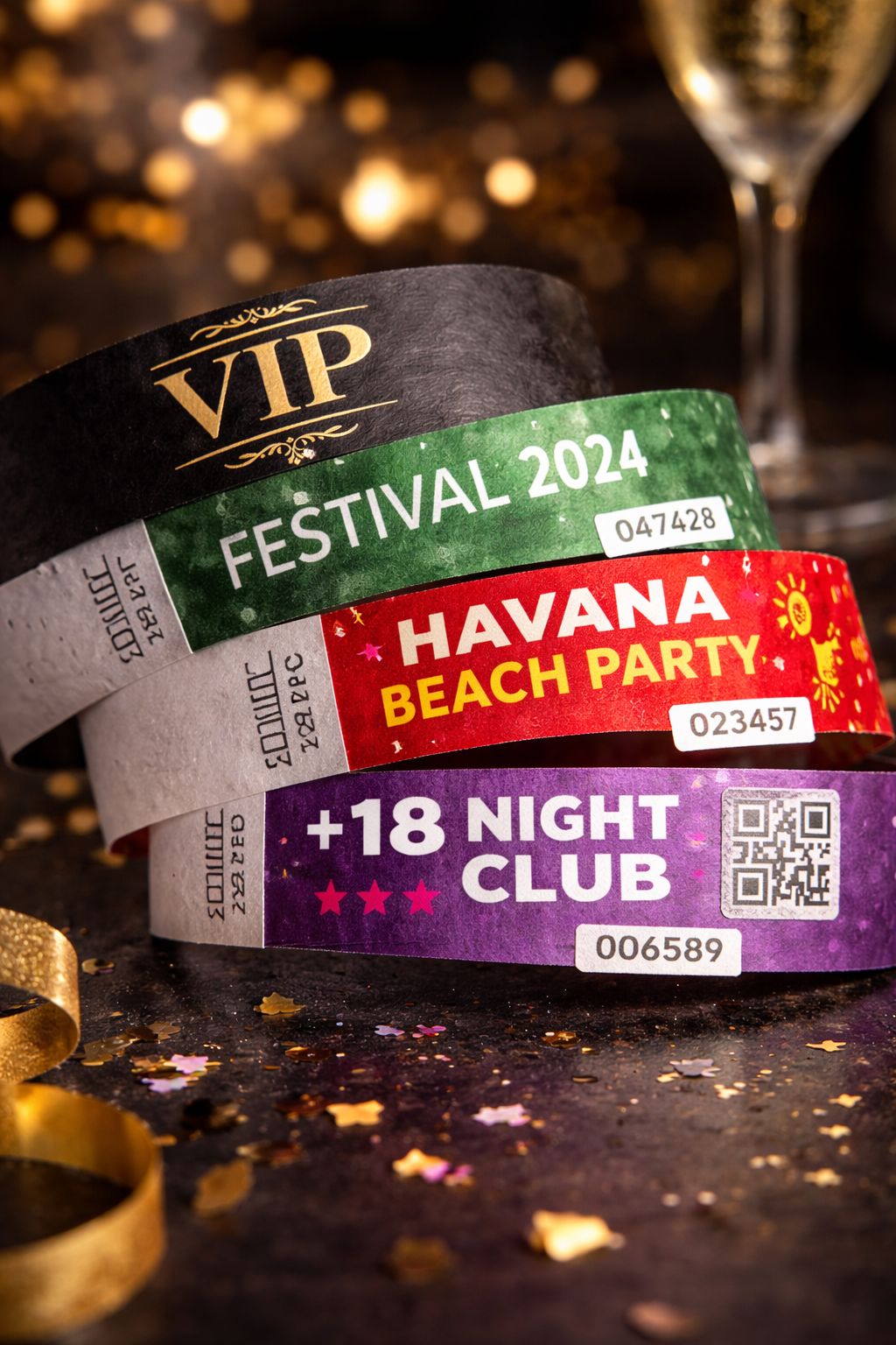 Servicio especializado de fabricación y entrega urgente de pulseras Tyvek personalizadas en Madrid. Control de accesos para eventos, ferias en IFEMA y hoteles. Entrega en 24 horas